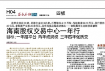 1月7日下午,新年伊始,海南股權(quán)交易中心在海南老城經(jīng)濟開發(fā)區(qū)海南生態(tài)軟件園B13號樓召開了2015年度工作總結(jié)會議。會議對2015年度工作進行總結(jié),并對2016年工作做了規(guī)劃,股交中心董事長李曉剛,總裁班淼琦,副總裁...