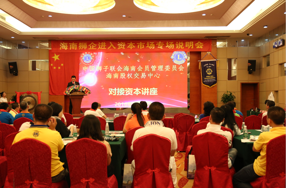 8月20日下午,海南股權(quán)交易中心與中國獅子聯(lián)合會海南會員管理委員會,在寶發(fā)幸福酒店共同舉辦獅子會企業(yè)集體掛牌儀式暨資本市場培訓活動。中國獅子聯(lián)合會海南會員管理委員會副秘書長于曉彪、海南股權(quán)交易中心副總裁程棟才、中國獅子聯(lián)合會海南會員管理委員會投融資委員會主席蔣文寧等領(lǐng)導出席活動。獅子會會員、企業(yè)代表40余人參加了本次培訓活動。