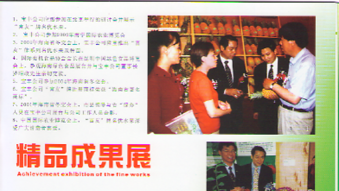 | 企業(yè)說明: | 海南寶豐農(nóng)業(yè)開發(fā)有限公司是1995年成立的一家集科研、開發(fā)、種植、加工和進出口貿(mào)易于一體的臺商獨資科技型農(nóng)業(yè)企業(yè)。是國家級“星火計劃”項目執(zhí)行單位、“國家級標準化生態(tài)種植示范基地”、“海南省農(nóng)業(yè)產(chǎn)業(yè)化重點龍頭企業(yè)”、“海南省農(nóng)業(yè)產(chǎn)業(yè)化優(yōu)秀龍頭企業(yè)”、“海南省優(yōu)秀流通企業(yè)”、“海南省“高新技術(shù)企業(yè)”、“瓊臺農(nóng)業(yè)合作示范基地”。公司的注冊商標—“富友”,自2003年連續(xù)三屆九年獲海南省“著名商標”認證。從1999年開始至今,公司“富友”牌珍珠番石榴、火龍果等多個品種獲得了 “綠色食品”認證,并先后代表海南省參加了國內(nèi)外農(nóng)業(yè)展覽達四十幾次之多,榮獲國家、省部級獎項30多項。2002年公司在海南又是第一家將農(nóng)產(chǎn)品以商品化形式走進全國大型連鎖超市的流通企業(yè),并成功舉辦過多次海南熱帶水果節(jié),影響很大。公司一貫堅持“高新技術(shù)先導(dǎo),科研開發(fā)為動力,綠色食品創(chuàng)品牌,優(yōu)質(zhì)精品創(chuàng)效益”的企業(yè)宗旨,堅定實行“綠色食品”的品牌戰(zhàn)略。并率先為引進海南的十多種熱帶水果制定了與國際接軌的企業(yè)標準和種植規(guī)程。2003年成立海南省名優(yōu)水果產(chǎn)銷促進會,將企業(yè)標準推廣到最基層,使海南農(nóng)業(yè)的標準化更前進一步,并獲得商貿(mào)廳頒發(fā)的優(yōu)秀流通企業(yè)的證書。2008年公司成立了子公司專門進行果酒、果醬等加工產(chǎn)品的研發(fā)、生產(chǎn)和銷售,推進了海南農(nóng)業(yè)產(chǎn)業(yè)化的發(fā)展,同時也成功的申請到注冊商標—“桑果莊園”。 在多年的發(fā)展中,公司積累了大量的各方資源,尤其是擁有臺灣特 有的相關(guān)資源,在農(nóng)業(yè)產(chǎn)業(yè)化發(fā)展中奠定了堅實的基礎(chǔ)和良好的平臺,并開發(fā)了“海峽兩岸”的項目。此項目可以彌補海南農(nóng)業(yè)分散經(jīng)營、標準化不統(tǒng)一、農(nóng)產(chǎn)品質(zhì)量良莠不濟、農(nóng)藥超標、農(nóng)產(chǎn)品加工比例小、附加值小、出口量少等諸多瓶頸問題。 公司法人代表為羅昭政先生,是2004年海南農(nóng)業(yè)“椰島獎”臺商的唯一獲獎?wù)?,是海南?/span>“十大杰出臺商”之一,現(xiàn)任中國管理科學(xué)院特約研究員、海南省名優(yōu)水果產(chǎn)銷促進會會長、曾任海南省臺資協(xié)會二、三、四屆副會長、海南大學(xué)農(nóng)學(xué)院顧問等職務(wù)。曾多次受到了國家領(lǐng)導(dǎo)人的親切接見與關(guān)懷。 |