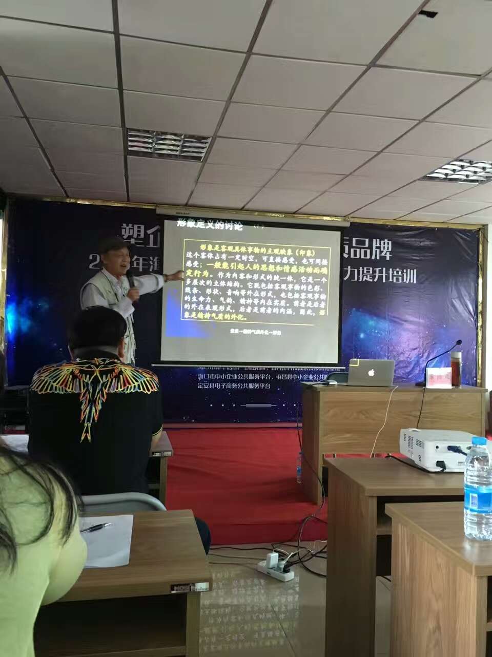 海南大學形象研究室主任徐國定教授在現場做專題培訓,徐國定從企業(yè)品牌管理能力、企業(yè)品牌形象塑造等方面進行了深入的講解,為中小企業(yè)品牌管理做專業(yè)的指導。現場,各企業(yè)還就企業(yè)品牌建設具體內容進行了交流和討論。