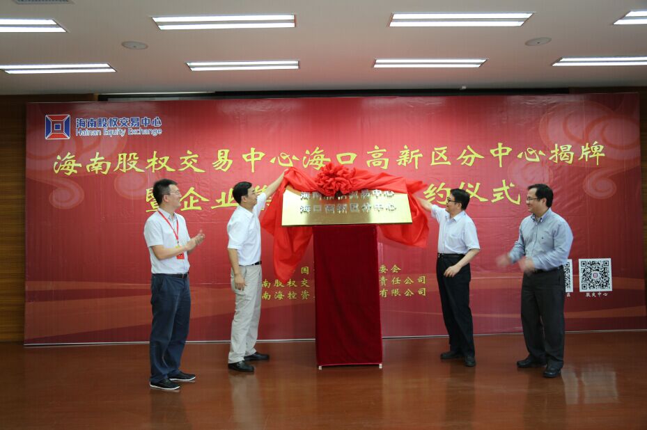 隨后,省科技廳黨組書記葉振興書記、省金融辦鄧傳明主任、??趪腋咝聟^(qū)黨委書記顧剛書記和海南股交中心李曉剛董事長共同為海南股權交易中心高新區(qū)分中心揭牌。