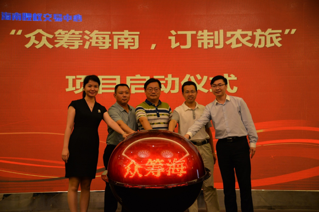 現(xiàn)場,省農(nóng)業(yè)廳信息中心主任林春、副主任陳大穗,省工商聯(lián)民營企業(yè)組織工作處副處長陳賢敏,股交中心副總經(jīng)理吳惠玉、程棟才按下啟動球,共同啟動2017年度“眾籌海南,訂制農(nóng)旅”項目。