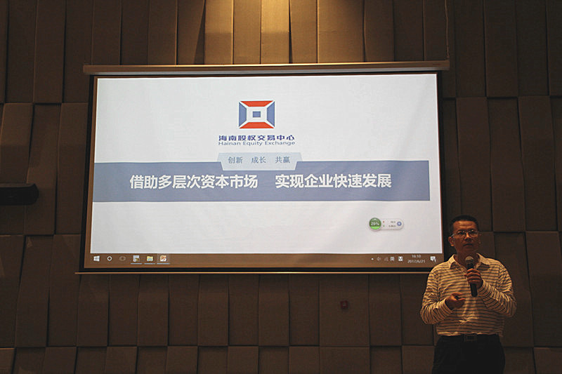海南股權交易中心培訓總監(jiān)馮偉民在活動上向各企業(yè)介紹股交中心的功能、作用及近期開展的工作,作為海南省唯一合法的區(qū)域性股權交易市場運營機構,股交中心積極集聚金融資源,積極發(fā)揮規(guī)范、培育、輔導等功能和作用,完善融資渠道和融資方式,大力解決企業(yè)發(fā)展難題。