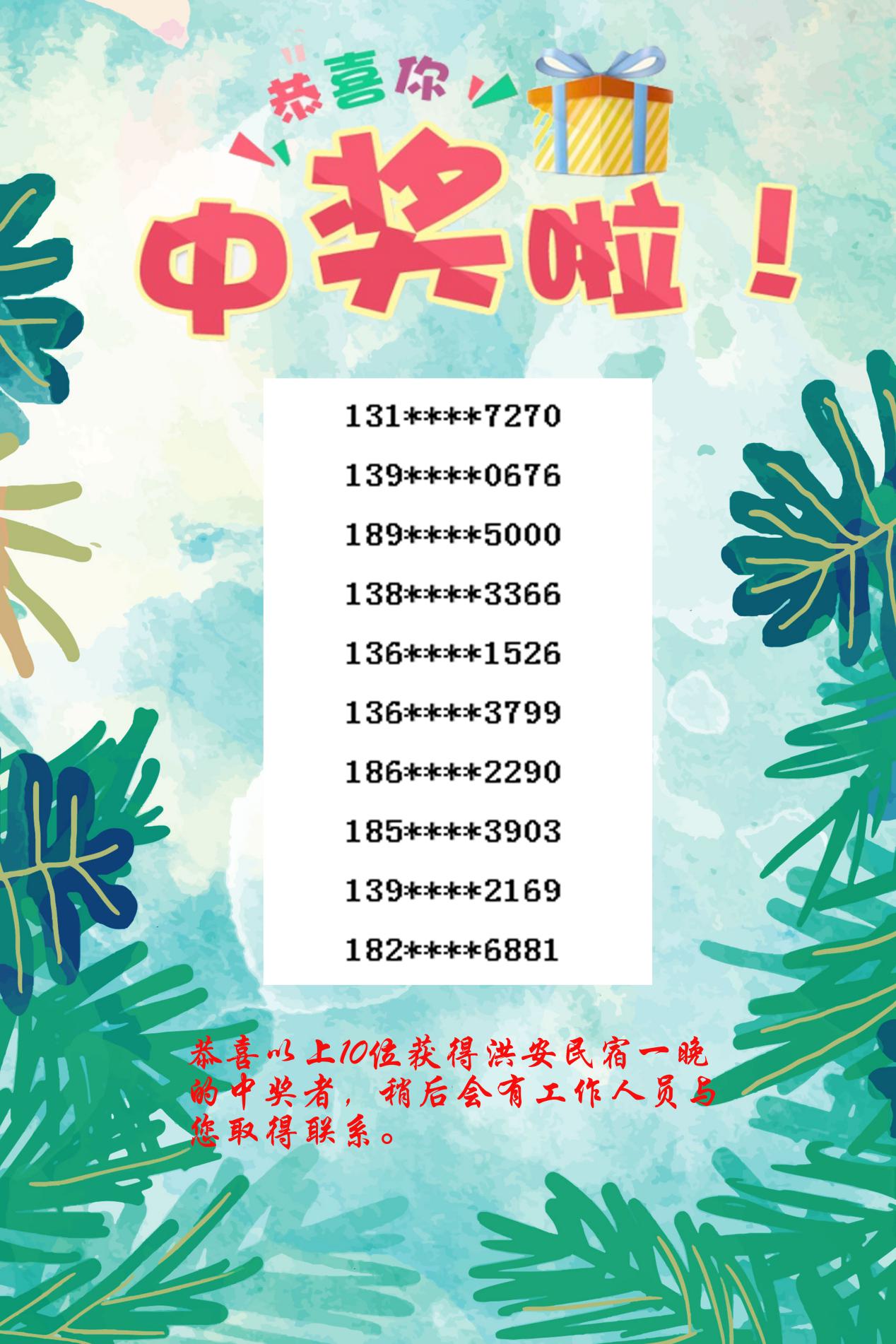 洪安民宿中獎(jiǎng)?wù)呙麊稳缦拢?