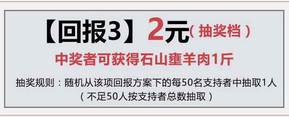 此次“石山壅羊”眾籌項(xiàng)目提供三種回報(bào)方案,其中回報(bào)方案三為“抽獎(jiǎng)檔”,根據(jù)方案,隨機(jī)從此回報(bào)方案下抽取獲獎(jiǎng)?wù)?,獲獎(jiǎng)名單如下: