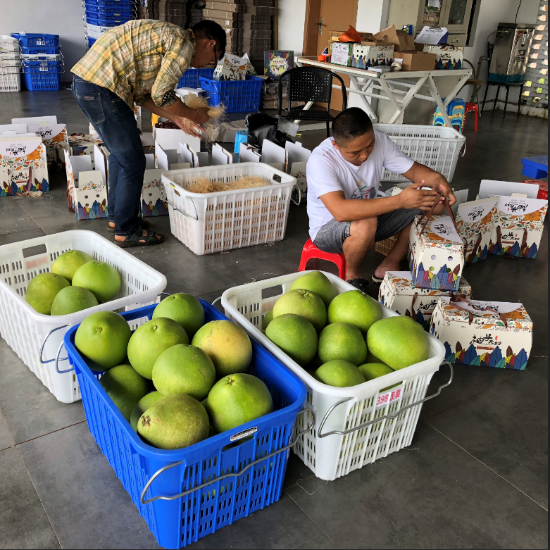 夏樹蒼翠,驕陽似火,烈日炎炎下洪安莊園的工人們依舊熱情飽滿的對(duì)采摘下來的蜜柚一一進(jìn)行稱重、分類、打包和入庫。