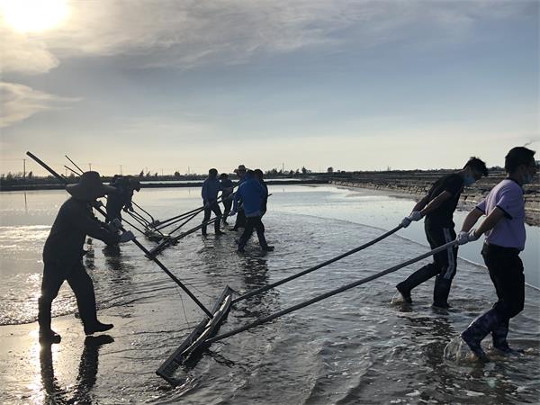 會議結(jié)束后,海南股交一行人員參觀了鹽場并下地勞作,清理鶯歌海鹽場池中的泥沙,充分感受到了鹽工勞作的艱辛與不易。