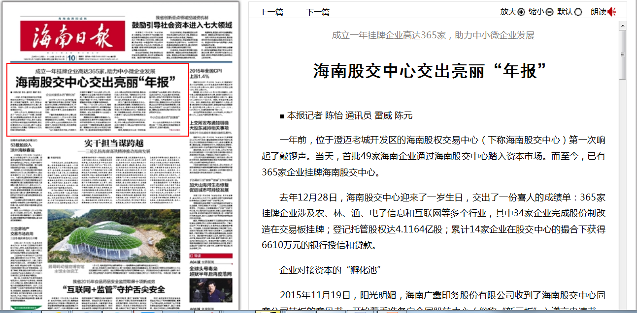 海南股交中心董事長李曉剛認(rèn)為,區(qū)域性股權(quán)交易所作為我國多層次資本市場的有效補(bǔ)充,目前全國的股交中心還沒有一個清晰的商業(yè)模式,都在探索。海南股交中心把2015年定位為服務(wù)的一年,通過積極培育更多的海南本土中小微企業(yè)完成股份制改造,推動他們進(jìn)入資本市場。“海南股交中心今年有365家企業(yè)掛牌,明年會增長到1000家,后年或是2000家。”