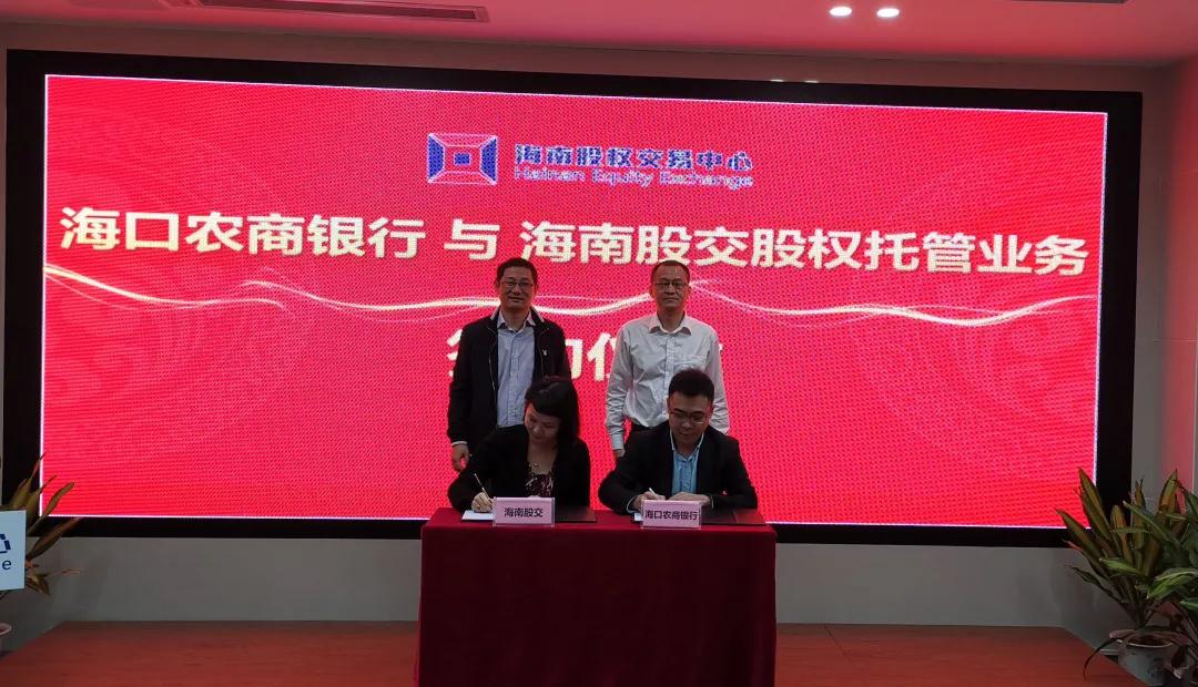 在現(xiàn)場領(lǐng)導(dǎo)、嘉賓的見證下,海南股交與??谵r(nóng)商銀行正式簽署銀行股權(quán)登記托管協(xié)議,??谵r(nóng)商行成為今年7月中國銀保監(jiān)會發(fā)布《商業(yè)銀行股權(quán)托管辦法》以來,率先在海南區(qū)域性股權(quán)交易市場運營機(jī)構(gòu)成功托管股權(quán)的非上市商業(yè)銀行,這對我省商業(yè)銀行股權(quán)托管工作極具示范意義。