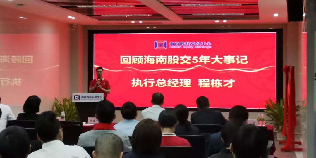 程棟才對掛牌企業(yè)表示祝賀,希望掛牌企業(yè)充分利用海南股交在融資、展示、培育等方面的功能和優(yōu)勢,進(jìn)一步規(guī)范治理結(jié)構(gòu)、建立現(xiàn)代企業(yè)制度、拓寬融資渠道,實現(xiàn)創(chuàng)新發(fā)展和轉(zhuǎn)型升級。隨后,程棟才介紹了海南股交成立五年來奮斗、探索、發(fā)展的建設(shè)歷程及取得的一系列成績,并引導(dǎo)現(xiàn)場領(lǐng)導(dǎo)、嘉賓一同回顧了海南股交五年來探索發(fā)展、深耕海南、服務(wù)企業(yè)走過的足跡。