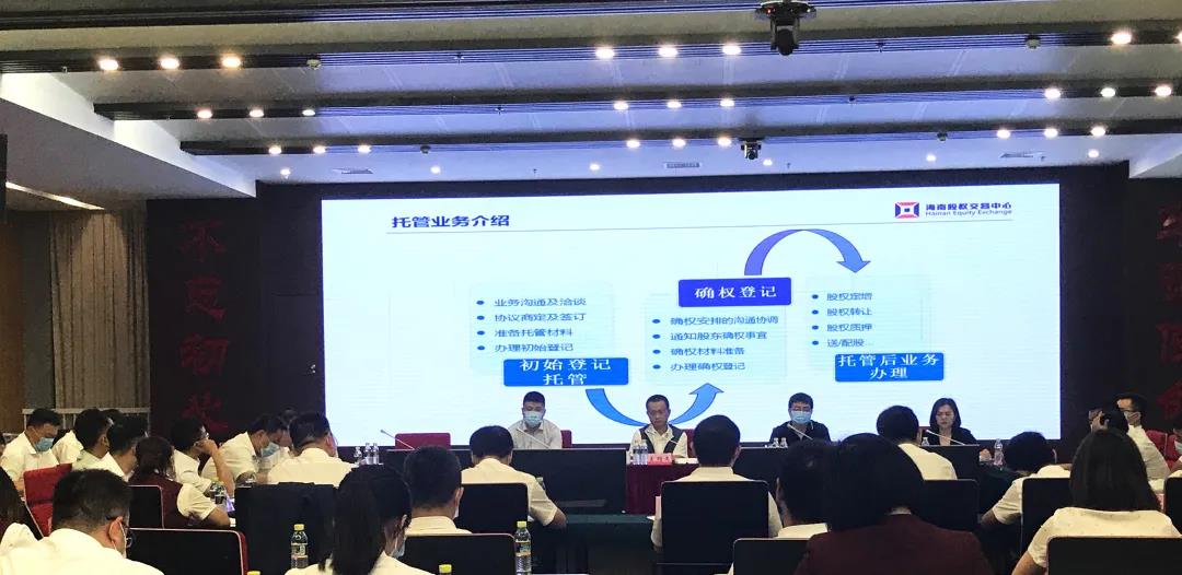 海南股交工作人員向與會人員介紹股權托管政策及我省農(nóng)商行股權托管業(yè)務開展情況,重點講解了初始登記及確權登記的流程和細則。在互動環(huán)節(jié),各市縣行社股權登記托管工作負責人就托管工作中遇到的問題及存在的難點、監(jiān)管政策和后續(xù)辦理流程等問題進行了充分交流。