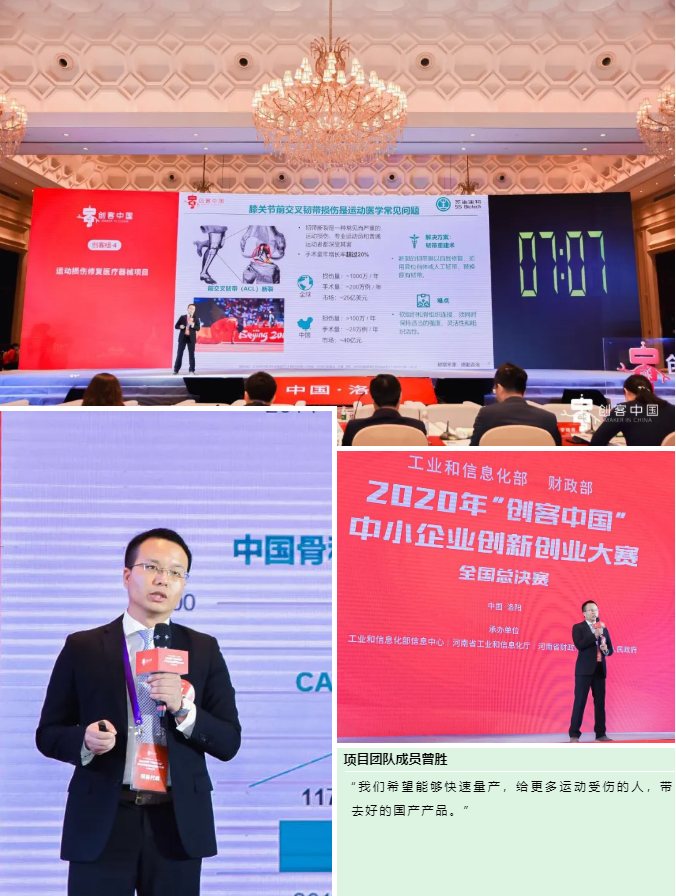 近日,由工業(yè)和信息化部、財(cái)政部、河南省人民政府主辦的2020年“創(chuàng)客中國(guó)”中小企業(yè)創(chuàng)新創(chuàng)業(yè)大賽全國(guó)總決賽在河南省洛陽(yáng)市舉辦。代表海南出賽的海南蘇生生物科技有限公司的“運(yùn)動(dòng)損傷修復(fù)醫(yī)療器械”項(xiàng)目從全國(guó)25388個(gè)參賽項(xiàng)目中脫穎而出并入選總決賽,最終獲得總決賽創(chuàng)客組二等獎(jiǎng)、生物醫(yī)藥類項(xiàng)目第一,為海南省企業(yè)參與創(chuàng)客中國(guó)大賽歷史最好成績(jī)。海南省工業(yè)和信息化廳、海南省財(cái)政廳榮獲2020年“創(chuàng)客中國(guó)”大賽優(yōu)秀組織單位,海南股權(quán)交易中心榮獲優(yōu)秀對(duì)接服務(wù)單位。