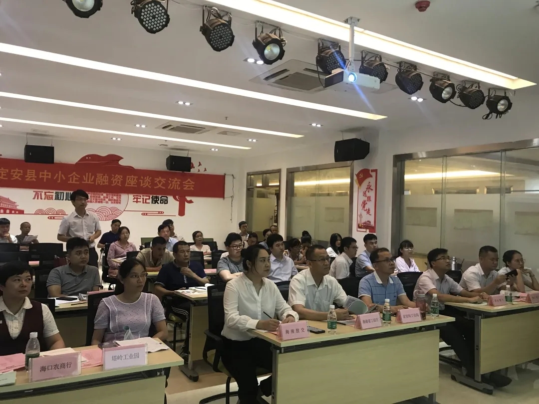 海南省工業(yè)和信息化廳、定安縣科工信局、定安塔嶺工業(yè)園等相關(guān)部門、園區(qū)負(fù)責(zé)人,中國農(nóng)業(yè)銀行、中國建設(shè)銀行、中國郵儲銀行、海南銀行、海口農(nóng)商行、海口市融資擔(dān)保、海金控?fù)?dān)保、信聯(lián)盛擔(dān)保、定安擔(dān)保等金融機構(gòu)代表及定安中小企業(yè)代表共約50人參加交流會。