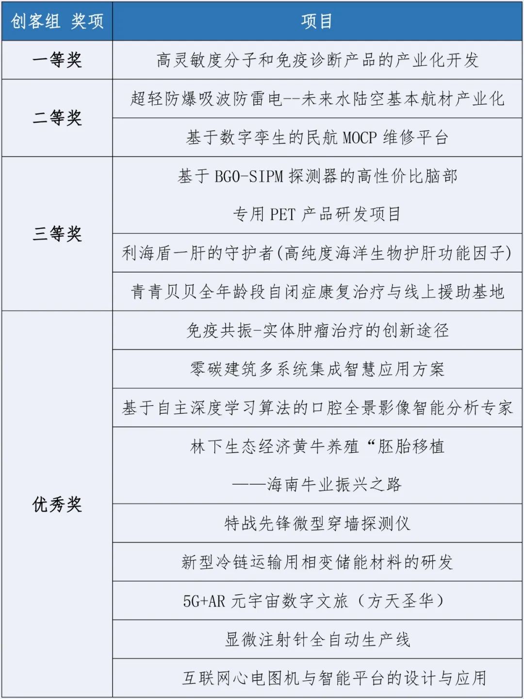 經(jīng)過(guò)專家評(píng)委評(píng)定及大賽組委會(huì)確認(rèn),大賽分別產(chǎn)生企業(yè)組、創(chuàng)客組一等獎(jiǎng)各1項(xiàng)、二等獎(jiǎng)各2項(xiàng)、三等獎(jiǎng)各3項(xiàng)以及優(yōu)秀獎(jiǎng)。經(jīng)過(guò)8個(gè)多小時(shí)的線上路演和答辯,30強(qiáng)項(xiàng)目進(jìn)行“云PK”,最終,“人工軟骨和新一代再生運(yùn)動(dòng)醫(yī)學(xué)”和“高靈敏度分子和免疫診斷產(chǎn)品的產(chǎn)業(yè)化開發(fā)”項(xiàng)目分獲海南賽區(qū)決賽企業(yè)組和創(chuàng)客組一等獎(jiǎng)。