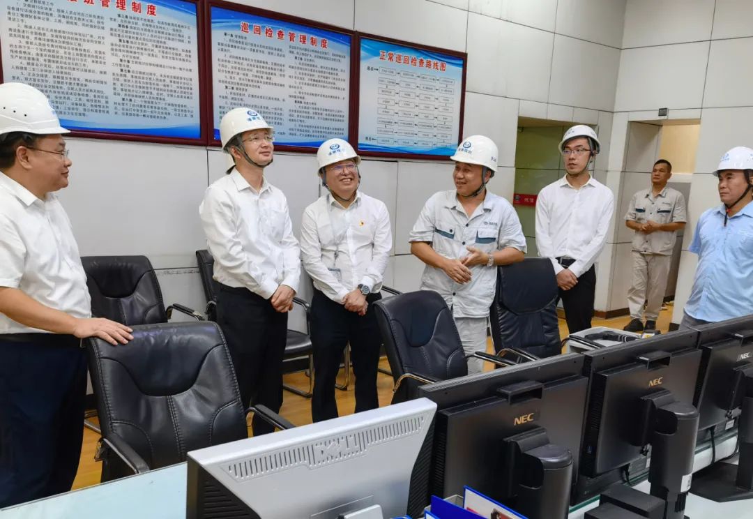 在牛路嶺水電站大壩,周軍平深入中央控制室、機房、泄洪口等地,詳細了解水電站安全生產(chǎn)情況,強調(diào)要堅決守牢安全生產(chǎn)底線,保持技術(shù)優(yōu)勢,追求技術(shù)創(chuàng)新,謀劃做好“低碳”“零碳”文章,服務(wù)海南國家生態(tài)文明試驗區(qū)建設(shè)。瓊海市委副書記、市長傅晟,瓊海市委常委、副市長潘艷紅,瓊海市副市長張笑寒,瓊海市發(fā)改委、資規(guī)局、財政局、生態(tài)環(huán)境局、城投公司參加座談會;海南控股黨委副書記肖發(fā)宣,黨委委員、副總經(jīng)理叢勁松,辦公室(黨辦)、投資與運營管理部、海南機場、??啬茉?、??刂脴I(yè)、美麗鄉(xiāng)村、博鰲機場、博鰲樂城開發(fā)公司等相關(guān)負責(zé)人分別參加當(dāng)天活動。