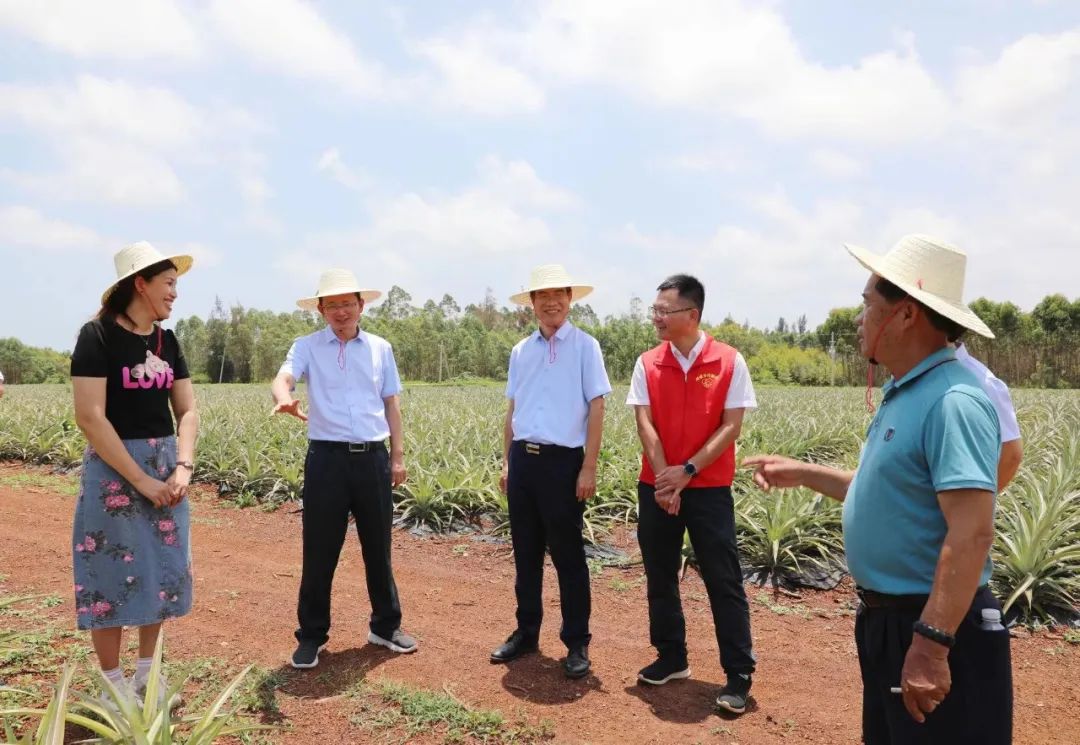 在臨高縣隆道村,入村公路兩旁熱帶作物長勢喜人,村容村貌干凈整潔,處處充滿生機活力。周軍平參觀了村委會黨員活動中心及鄉(xiāng)村振興大事記專欄,關切地詢問海南控股駐村干部的日常生活起居情況,并對其展現的“艱苦奮斗、追求卓越、服務海南”的??鼐窠o予充分肯定。周軍平一行來到公司產業(yè)扶持項目隆道村小黃牛養(yǎng)殖場,向村民了解小黃牛養(yǎng)殖品種與規(guī)模、消毒防疫流程、銷售及分紅模式等情況;走進基地與田間,實地察看光伏扶貧發(fā)電站、“退桉改柚”種植項目,對發(fā)電效率、電費收費、投資情況及鳳梨蜜柚等熱帶水果的產銷、合作經營模式等進行深入了解。他指出,鄉(xiāng)村振興產業(yè)先行,海南控股將持續(xù)履行幫扶責任,樹牢以人民為中心的理念,充分發(fā)揮公司資源優(yōu)勢,積極謀劃產業(yè)項目,大力推廣優(yōu)質模式,積極推動消費幫扶、扶志扶智等工作,拓寬助農益農渠道,在實現鄉(xiāng)村振興中彰顯擔當作為。