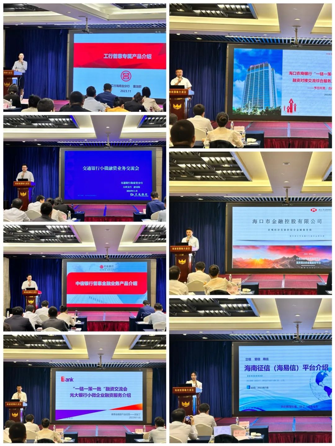 隨后,中國工商銀行、交通銀行、中信銀行、光大銀行、海南省農(nóng)信社、??谑腥谫Y擔(dān)保、海南征信等金融機構(gòu)相關(guān)人員依次分享了各自目前最新的融資產(chǎn)品及相關(guān)申請條件,并圍繞企業(yè)實際融資需求,進(jìn)行了有針對性的講解。