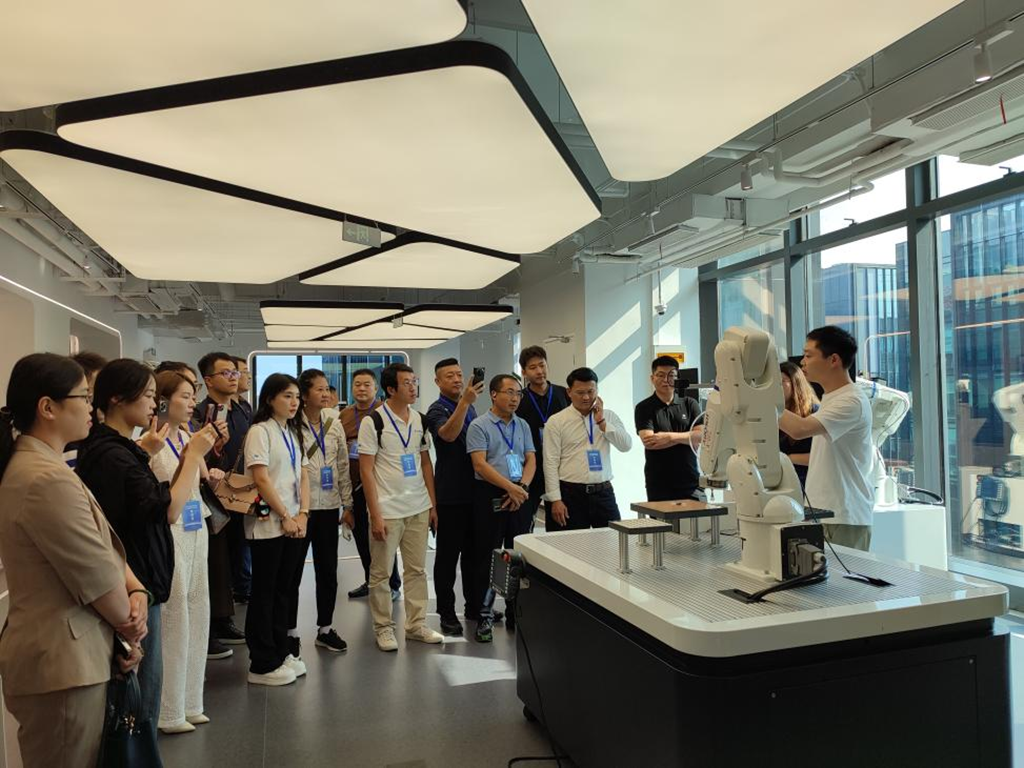 下午,企業(yè)代表前往上海太敬機器人,體驗人工智能與機器人技術(shù)的前沿應(yīng)用。上海太敬機器人有限公司是一家模擬機器人科技文化公司,開展從機器人研發(fā)、制造到對適齡人群進行教育、培訓(xùn)等多種服務(wù)。通過展廳參觀、機器人表演及實操互動環(huán)節(jié),企業(yè)代表不僅拓寬科技視野,也感受到智能制造業(yè)的迅猛發(fā)展與跨界融合的可能。