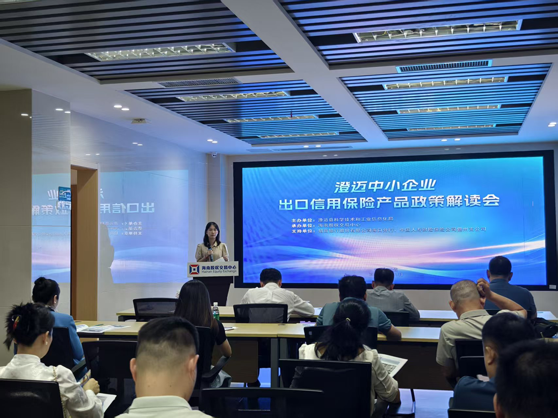 2025年11月11日下午,澄邁縣科學技術和工業(yè)信息化局舉辦“中小企業(yè)出口信用保險產(chǎn)品政策解讀會”,旨在幫助當?shù)刂行∑髽I(yè)應對日益復雜的國際貿(mào)易環(huán)境,提升風險防控能力,增強跨境經(jīng)營信心?;顒佑珊D瞎蓹嘟灰字行某修k,招商銀行??诜中信c中國人壽財產(chǎn)保險儋州支公司共同支持。